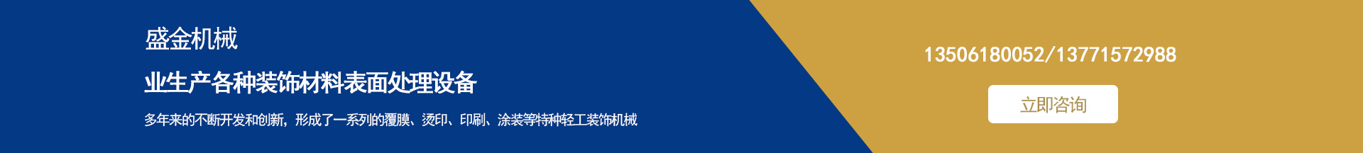 盛金機械專業(yè)生產各種裝飾材料表面處理設備 集多年來的不斷開發(fā)和創(chuàng)新,形成了一系列的覆膜、燙印、印刷、涂裝等特種輕工裝飾機械。并敢于和善于開發(fā)用戶急需的特殊要求機械設備。